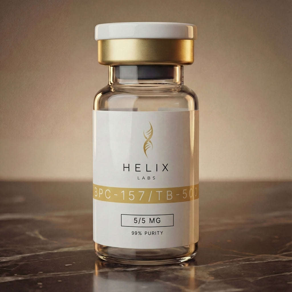 BPC-157 / TB-500 Blend kombinuje dva výskumné peptidy s komplementárnymi mechanizmami na molekulárnej úrovni. Výskum in-vitro skúma interakcie BPC-157 s angiogennými faktormi a VEGF signalizáciou, kým TB-500 (Thymosin Beta-4) ovplyvňuje dynamiku aktínového cytoskeletu a G-aktínové sekvestre. Tento blend umožňuje koordinované štúdie synergických účinkov oboch peptidov v bunkových kultúrach a biochemických testoch. HELIX LABS dodáva túto zmes ako vysoko čistý referenčný materiál pre in‑vitro laboratórne aplikácie, vrátane komparatívnych štúdií peptidovej farmakológie. Každá šarža je testovaná nezávislým analytickým laboratóriom v Európskej únii na potvrdenie deklarovanej čistoty.